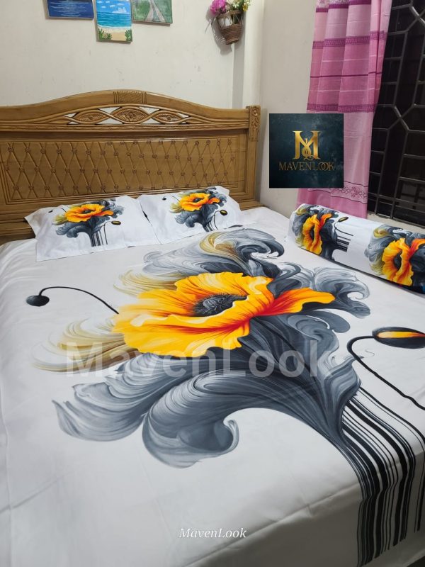 Name:- Flowing Flame Floral Yellow Price:- Home Collection 4 piece set-990 TK (Bedsheet, 2 head pillow covers, 1 side pillow