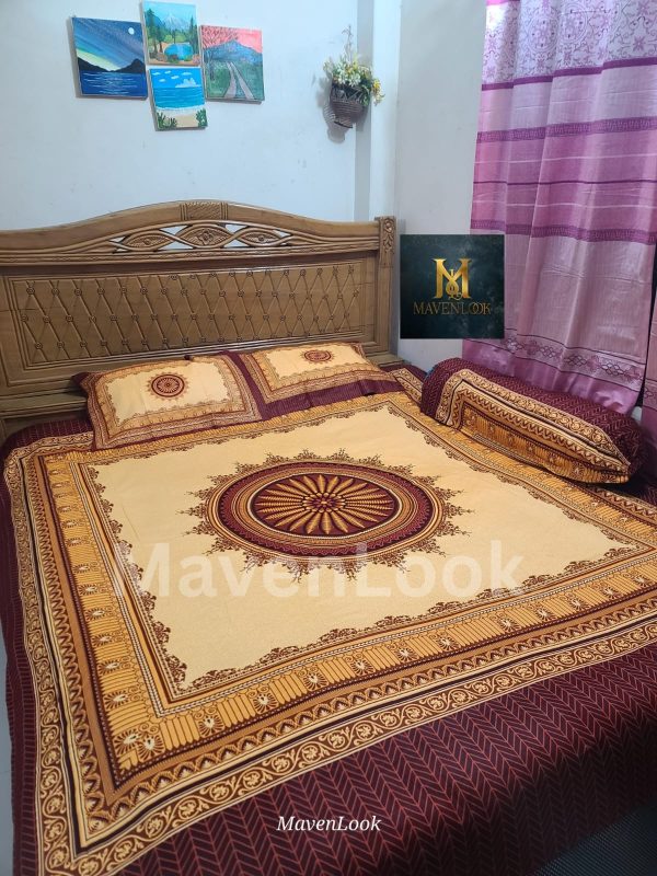 Name:- Classic Patterned Elegance Golden Base with Maroon Panel Price:- 4 piece set-990 TK (Bedsheet, 2 head pillow covers, 1
