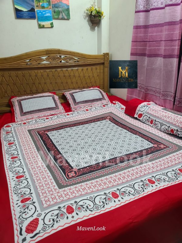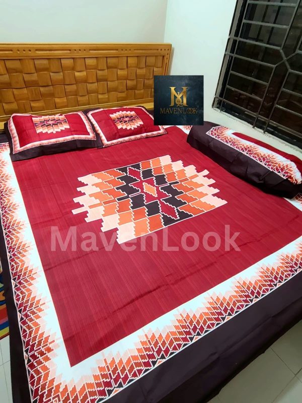 Name:- Scarlet Mosaic Price:- 4 piece set-990 TK (Bedsheet, 2 head pillow covers, 1 side pillow cover) 3 piece set-890